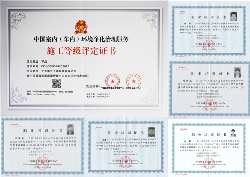 我們由經過專業(yè)培訓并取得資格證書的技術工程師擔任治理施工負責人,面向客戶對效果負責。我公司總經理從2008年開始,擔任人力資源和社會保障部“就業(yè)培訓技術指導中心”頒發(fā)證書的“全國室內環(huán)境檢測治理崗位和職業(yè)資格培訓班”專任講師,為行業(yè)培養(yǎng)了一大批專業(yè)技術人才,得到央視新聞頻道、北京衛(wèi)視、山東衛(wèi)視、青海衛(wèi)視、齊魯網(wǎng)等媒體新聞報道。