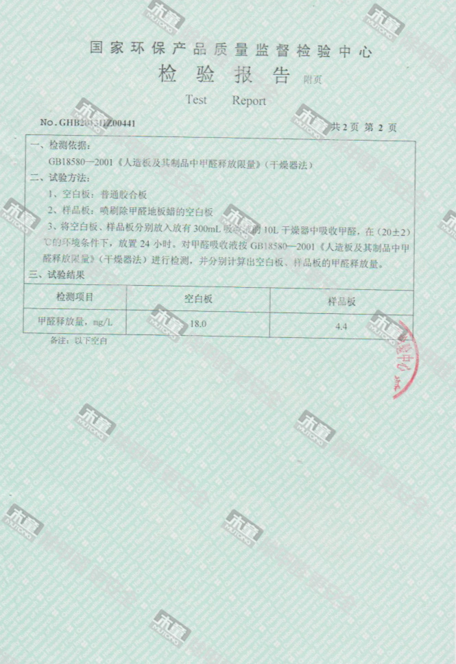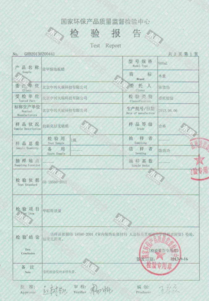 木童除甲醛地板蠟檢測報(bào)告